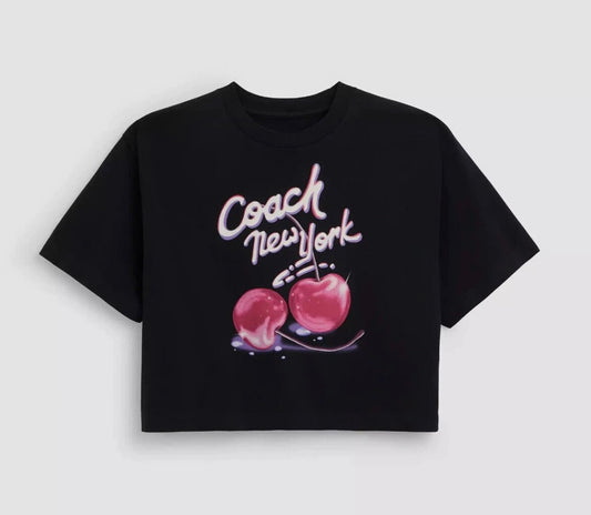 Coach Women Airbrushed Cherry Organic Cotton Cropped T Shirt (CQ841) - SALE